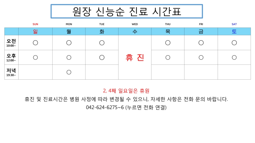 2,4째 일요일 : 휴진